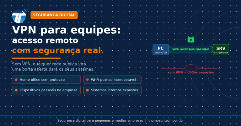 Equipe trabalhando de casa sem acesso seguro, sem VPN, sem controle. Risco de vazamento de dados a cada conexão.
